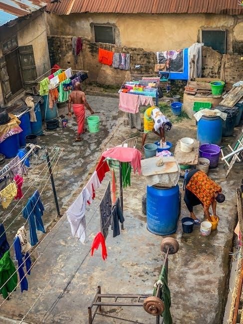 Distribute items evenly within the drum to maintain balance during the wash cycle. Avoid overloading‚ as this reduces cleaning effectiveness and can damage the machine. Separate clothes by fabric type and color – whites‚ darks‚ and delicates should be washed separately.